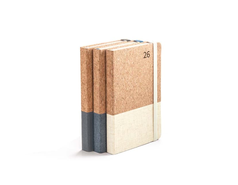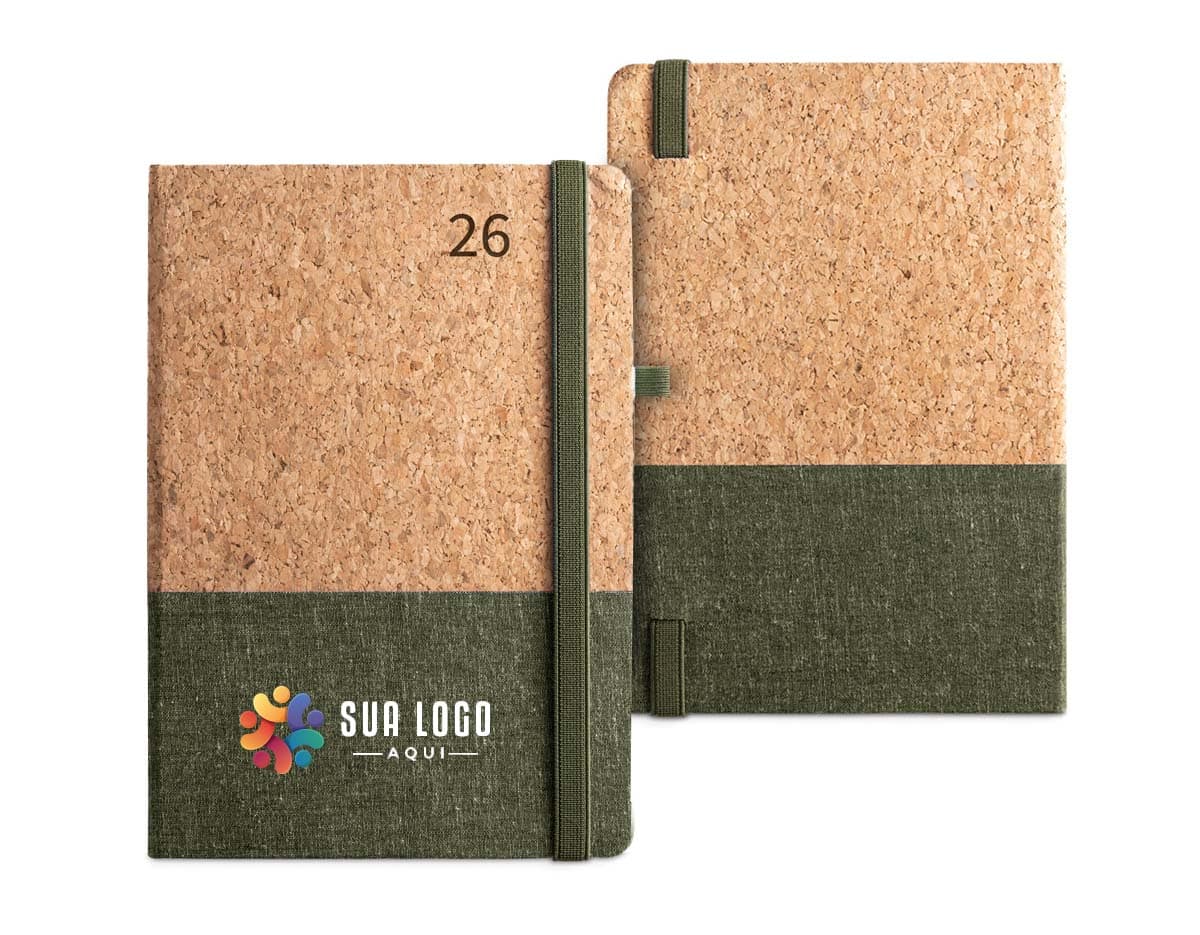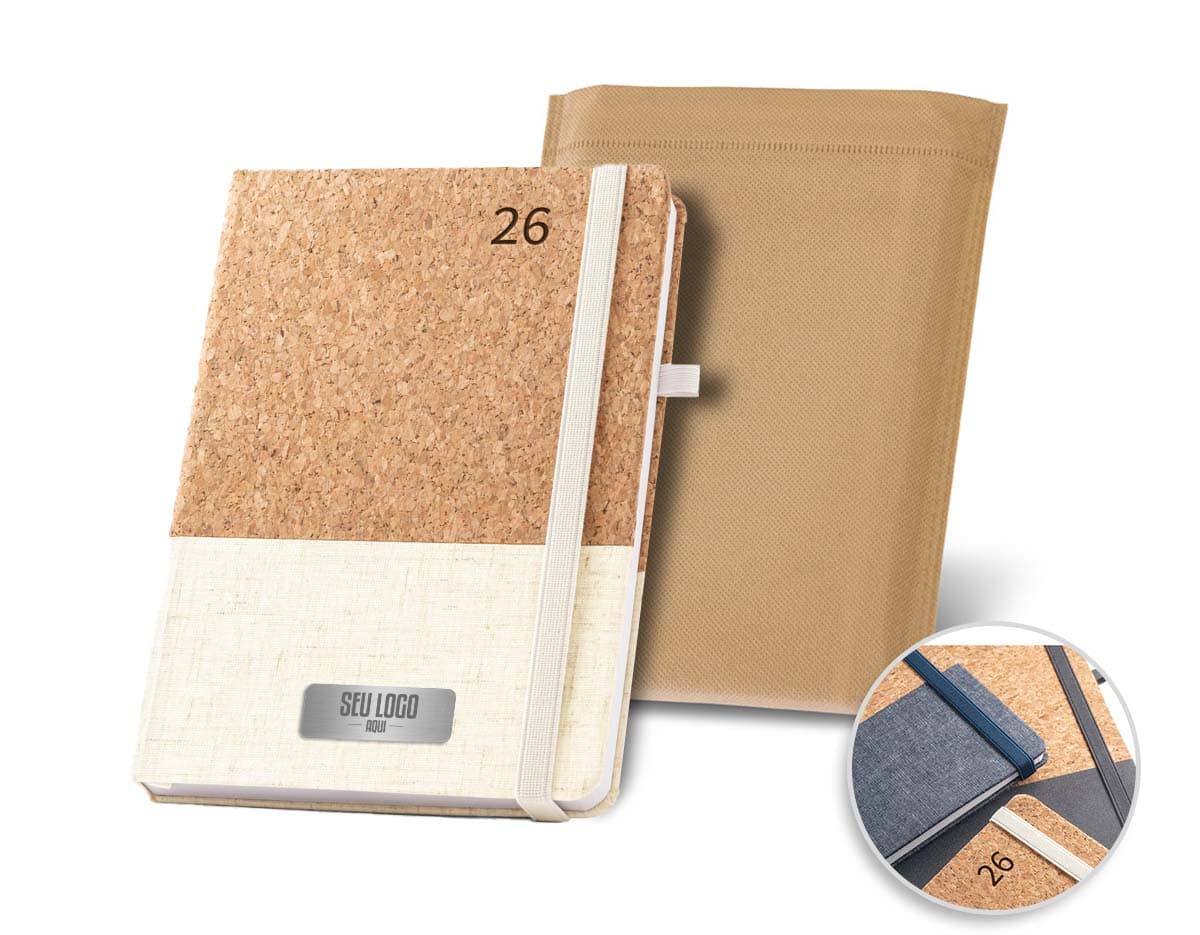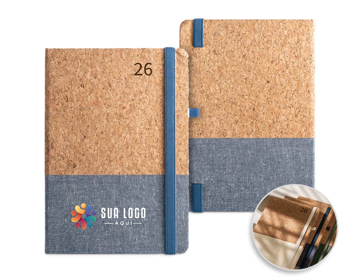 COD.: 1409Agenda diária 2026 em couro sintético com detalhes texturizados e marca-páginas em fita de cetim. Contém páginas dedicadas a dados pessoais, calendários de 2025 a 2027, lista de contatos, planejamento diário e mapas.