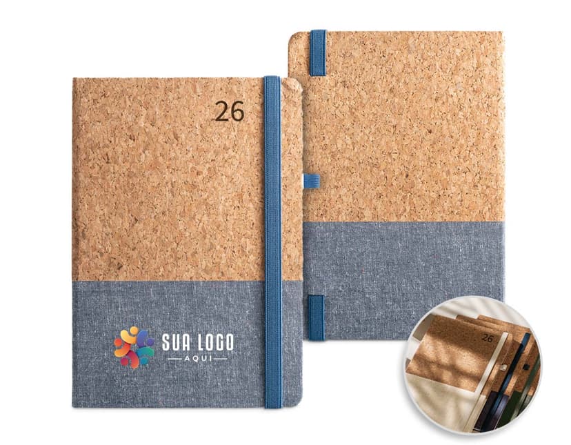 COD.: 4873Agenda 2026 com capa dura de revestimento emborrachado. Contém páginas dedicadas para dados pessoais, calendários de 2025 até 2027, orçamentos mensais, anotações, planejamentos mensais, lista de contatos e mapas.