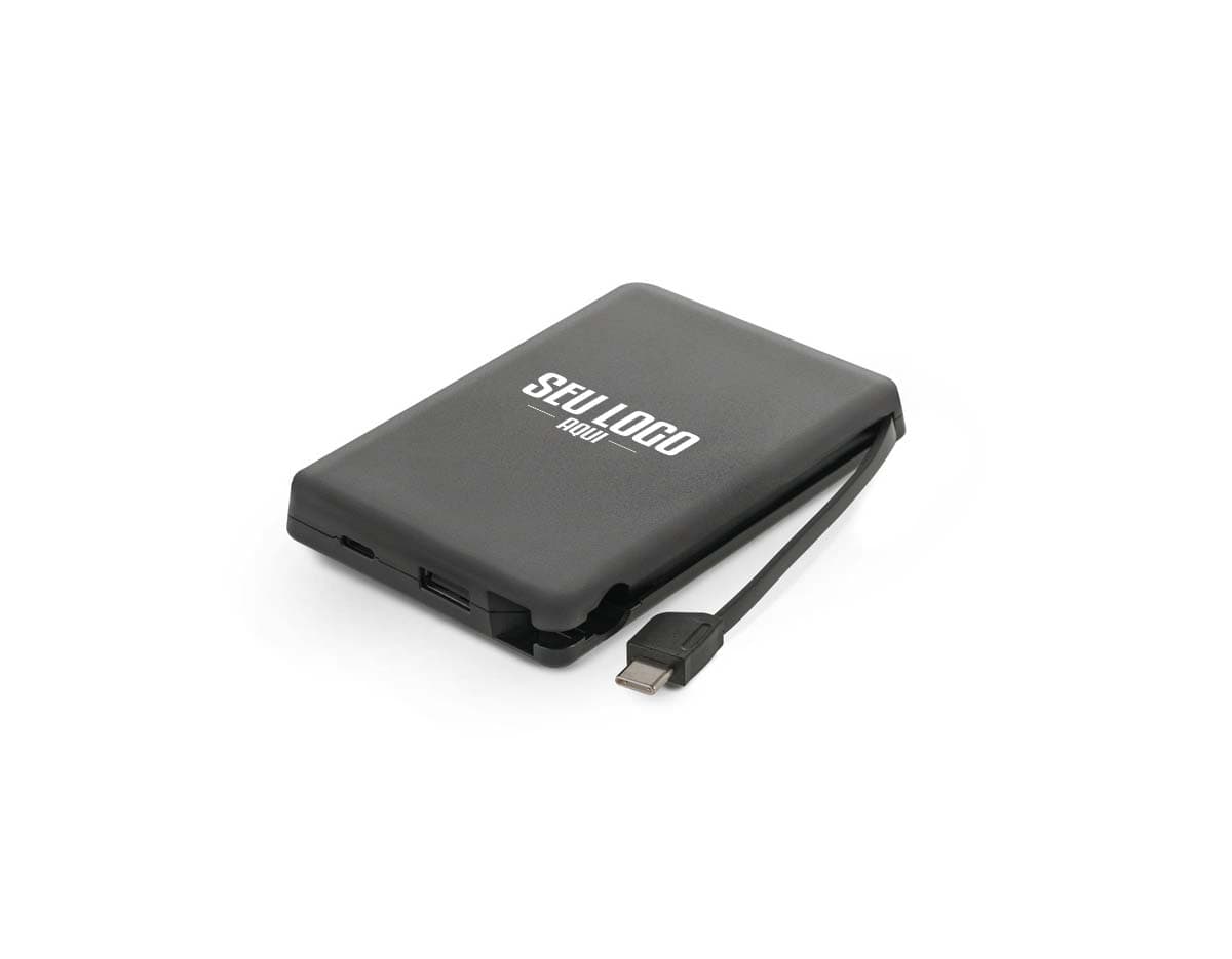 LATTES Bateria portátil em ABS 100 reciclado com cabo integrado e capacidade de 10 00 mAh