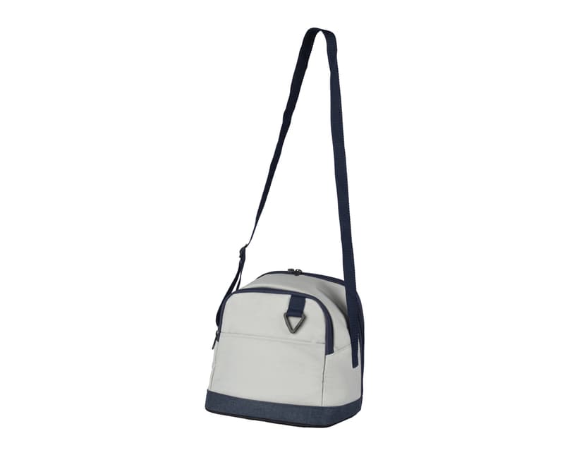 COD.: 3706Bolsa térmica 7,6 litros. Contém bolso frontal, bolsos laterais telados, alça de mão em nylon e alça transversal regulável (não removível) com apoio para ombro.