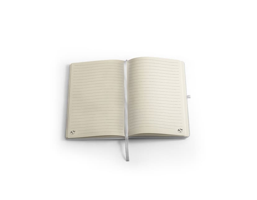 COD.: 1158Caderno A6 com capa dura em c. sintético e 80 folhas pautadas. 90 x 140 mm