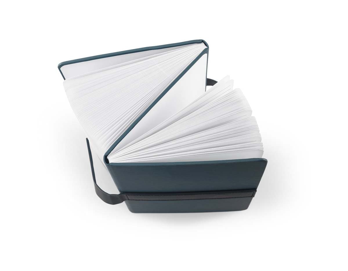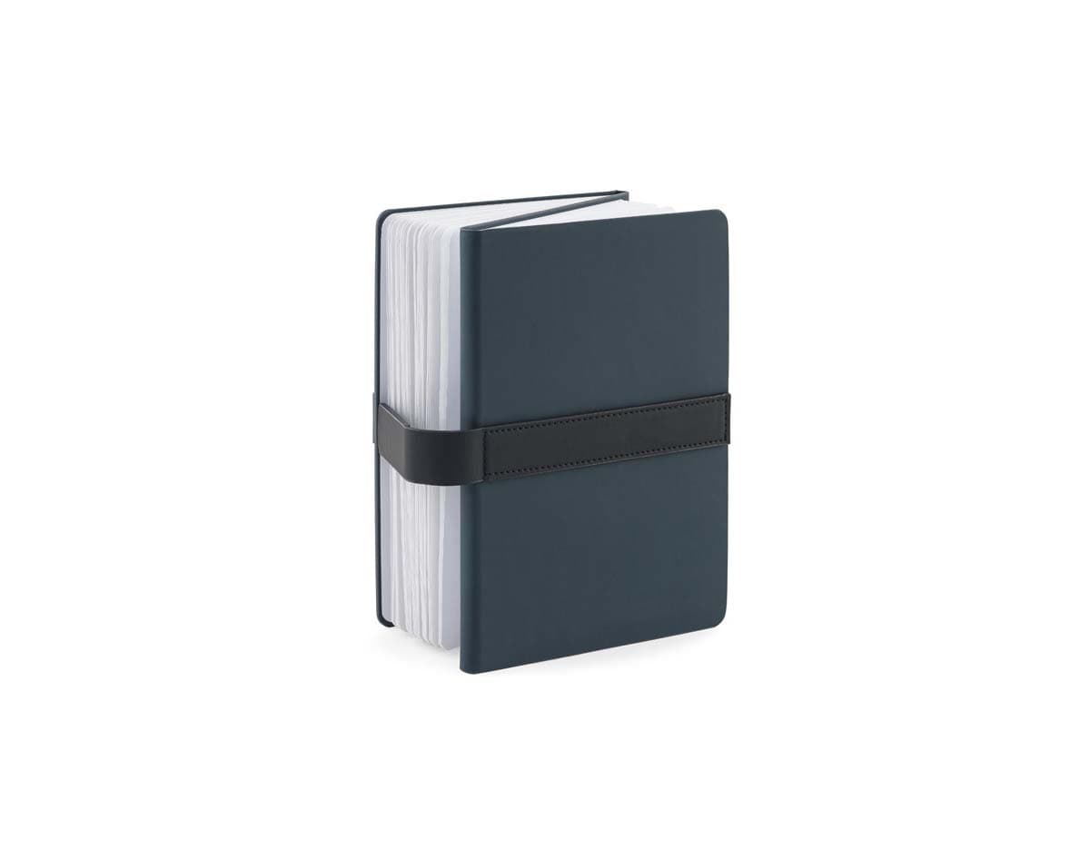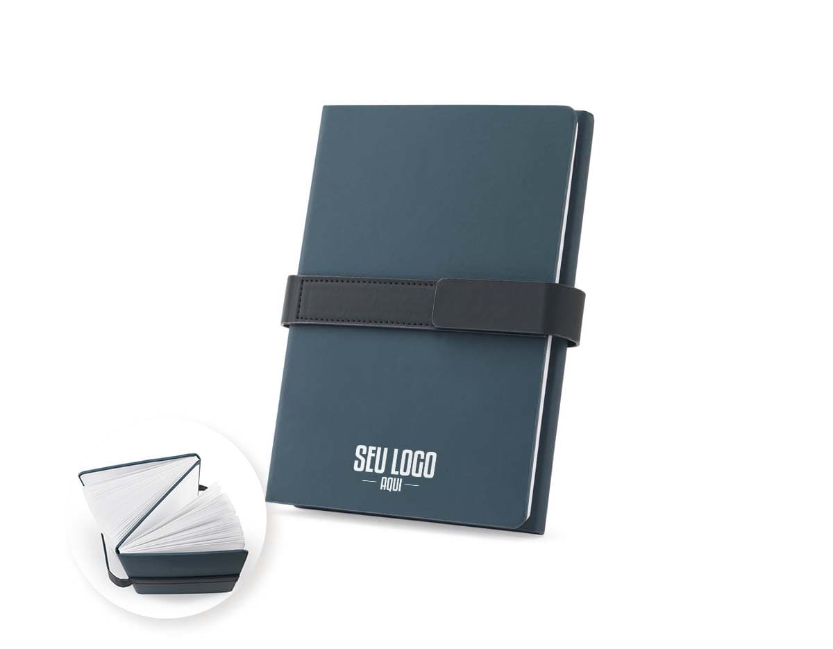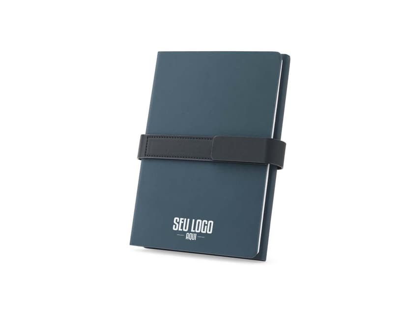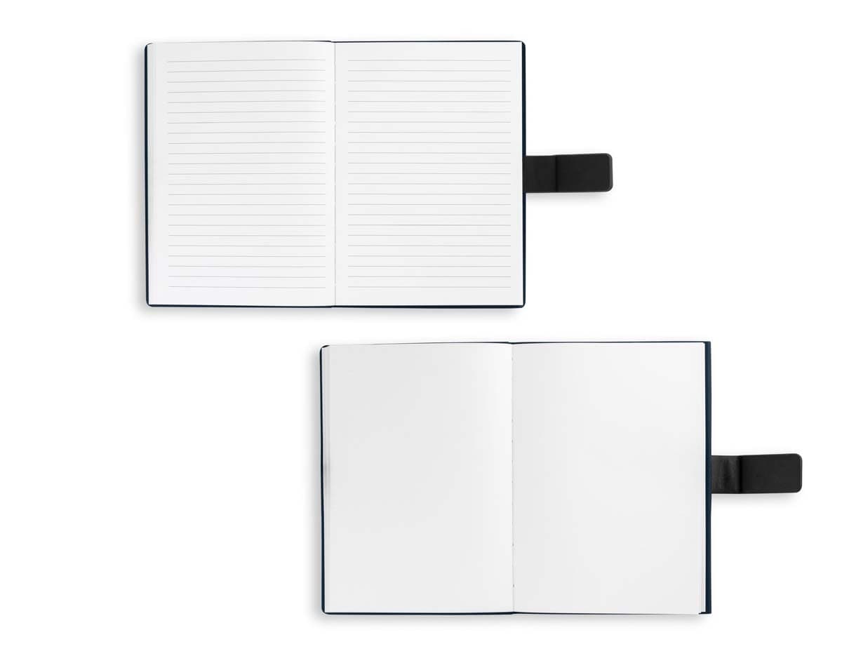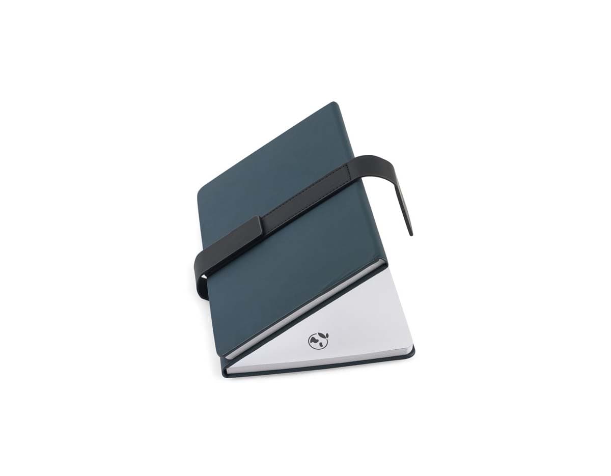 Caderno A5 com um design moderno desenvolvido para ser versátil no seu dia de trabalho. Composto por uma capa dura em 80% materiais reciclados (PU reciclado e poliéster reciclado), este caderno está estruturado em duas partes: a primeira tem 128 páginas pautadas e a segunda 128 páginas lisas, ambas feitas de um material proveniente de gestão florestal sustentável. Contém uma fita para fecho magnético do caderno.