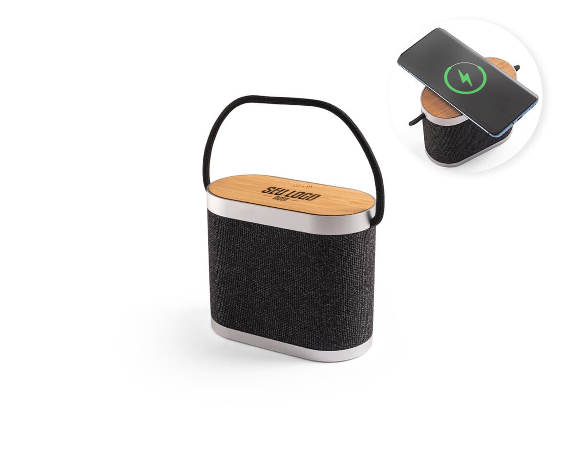 COD.: 7383Caixa de som em bambu e poliéster 100% reciclado, com som potente de 5W e autonomia de 2h. Possui carregador wireless super-rápido de 15W no topo, ideal para quem busca praticidade e sustentabilidade. Conexão BT 5.3, compatível com smartphones com carregamento sem fio. Acompanha cabo USB-C. Um brinde moderno, útil e com apelo ecológico.