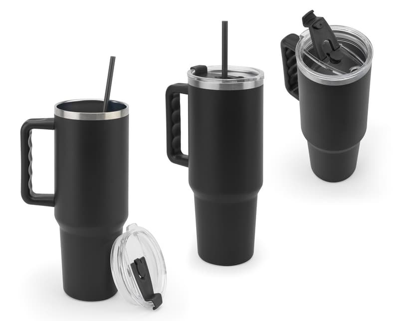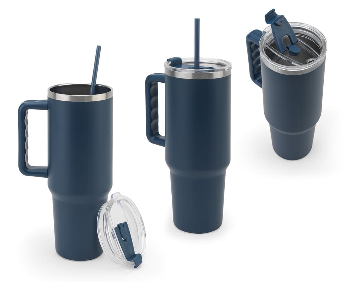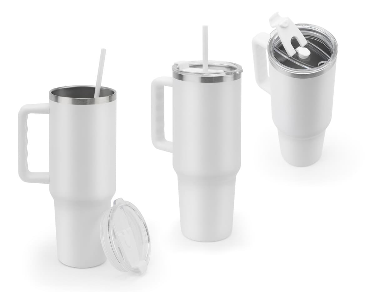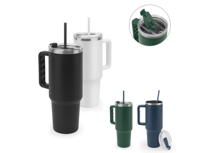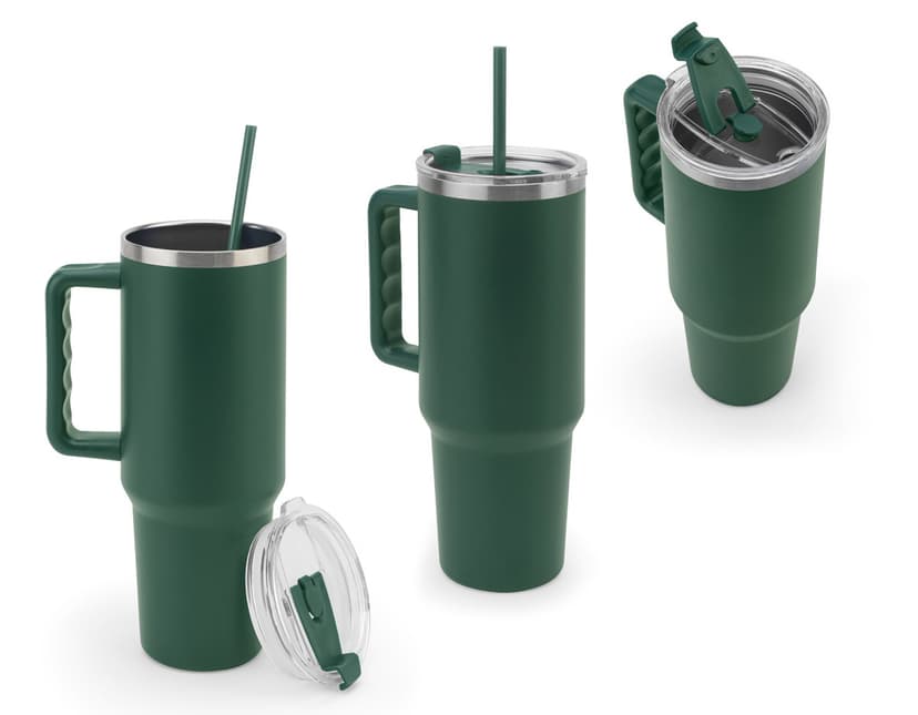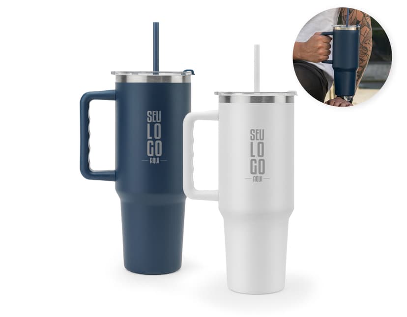 COD.: 7437Copo de viagem com capacidade de até 460 mL, confeccionado em polipropileno (PP) e aço inox 90% reciclado. Apresenta parede dupla com acabamento fosco, ideal para manter a temperatura da bebida por mais tempo. A tampa em PP é à prova de vazamentos e possui uma alça em PU e PET que facilita o transporte com segurança e praticidade.