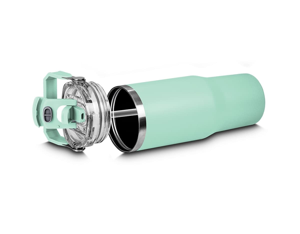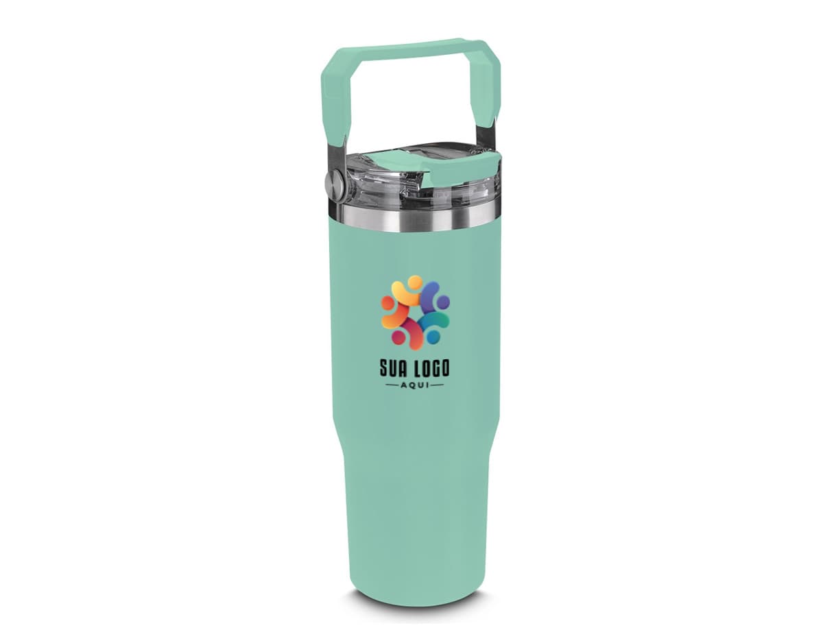 Garrafa térmica de aço inox com parede dupla e capacidade de até 900ml. Possui tampa rosqueável com alça plástica para transporte e anel de silicone para vedação segura. Conta com duas opções de uso: hidratação por canudo ou bico, garantindo praticidade e conforto. Ideal para manter suas bebidas na temperatura ideal com estilo.