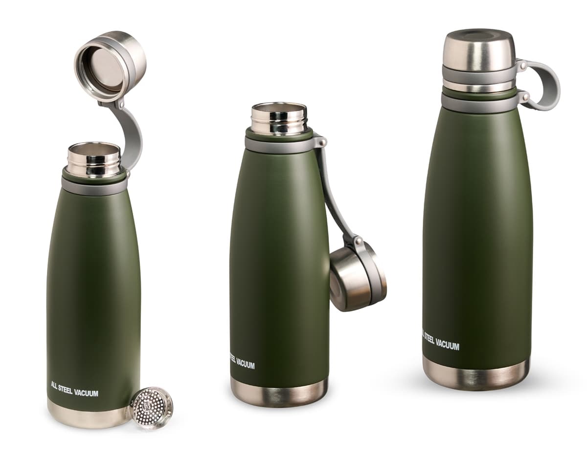 COD.: 7468Garrafa térmica em inox com pintura eletrostática e capacidade de até 600ml. Possui estrutura de parede dupla e tampa interna rosqueável com anel de vedação, abertura do bocal por botão de acionamento e infusor. Conta ainda com tampa externa em formato de caneca e alça emborrachada para transporte.