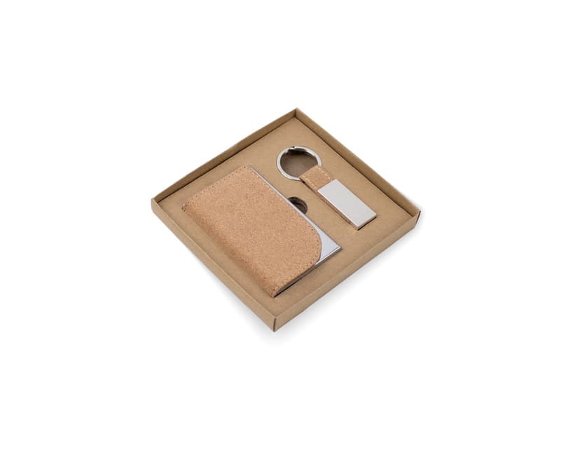 GOSLING Conjunto composto por um portacartões e chaveiro ambos em metal e cortiça