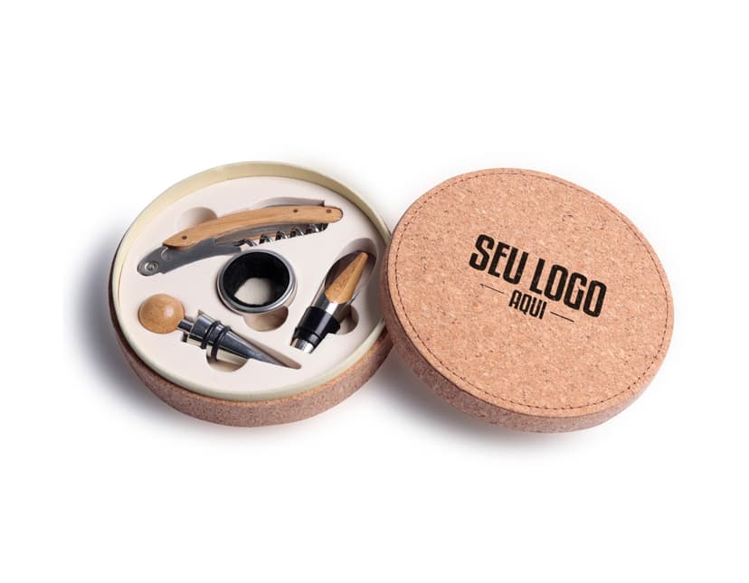 KIT VINHO 5 PEÇAS DE BAMBU E METAL PERSONALIZADO