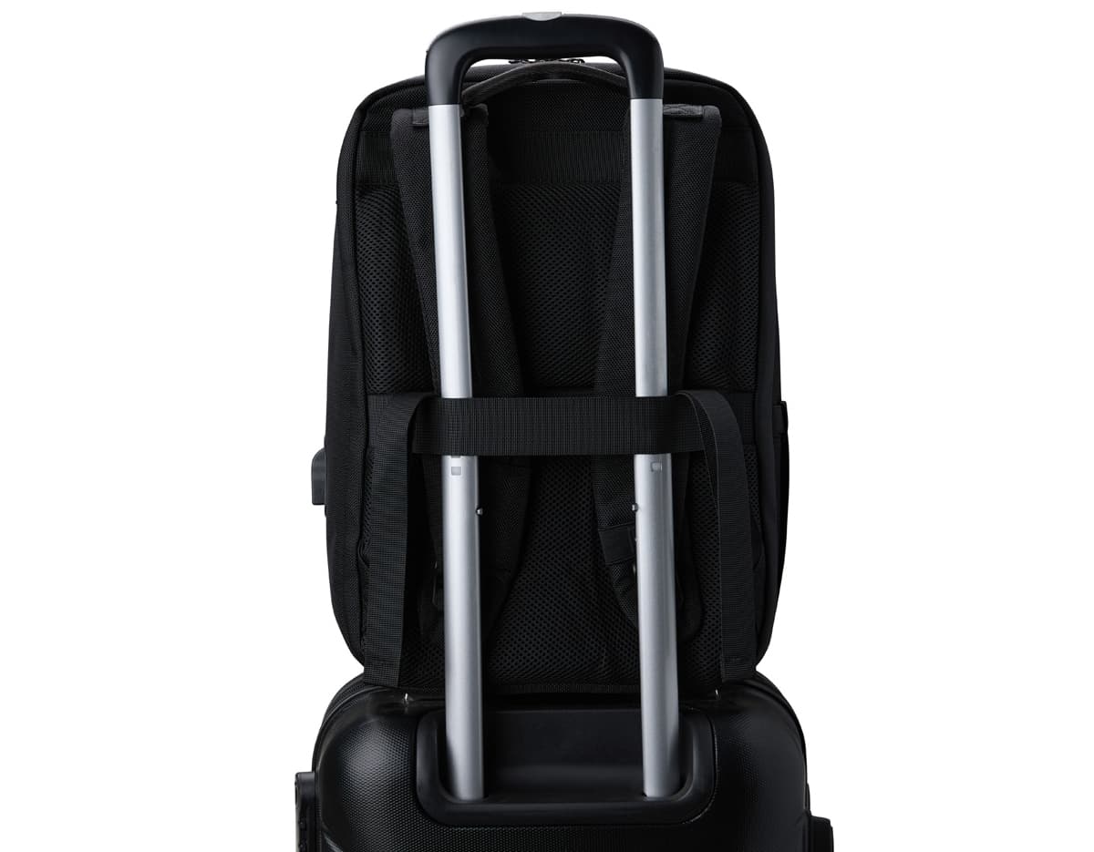 COD.: 2278Mochila trolley para notebook. 600D de alta densidade e poliéster 600D impermeável. Para notebook até 15.6''. Bolso frontal com zíper e bolsos laterais com tela. Com protetor de rodas. Pega extensível em metal. Parte posterior e alças almofadadas. Placa metálica removível com imã, para fácil gravação.