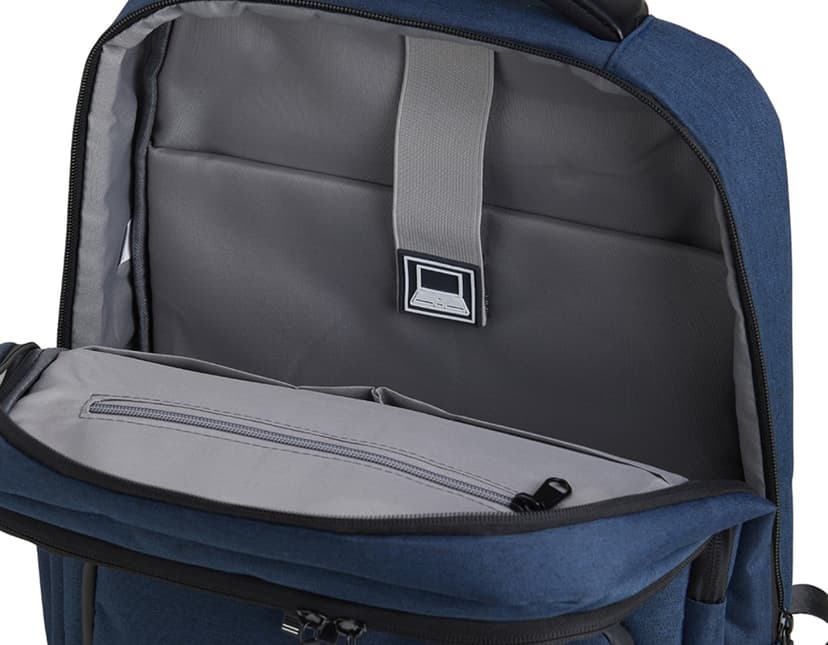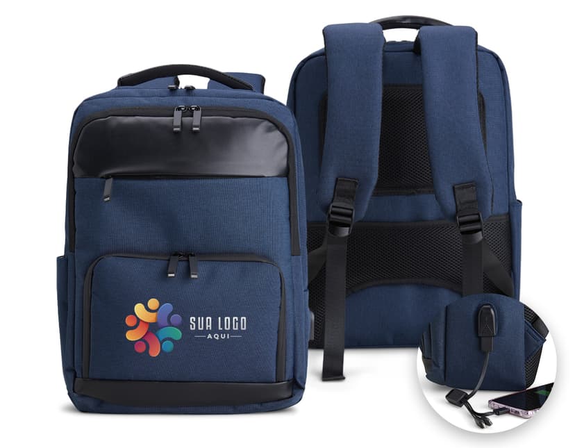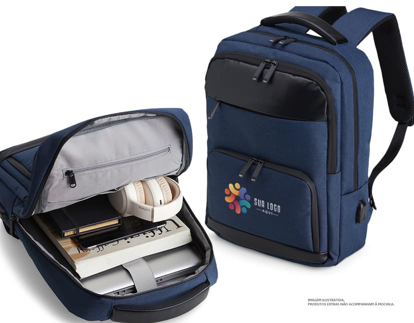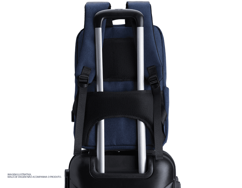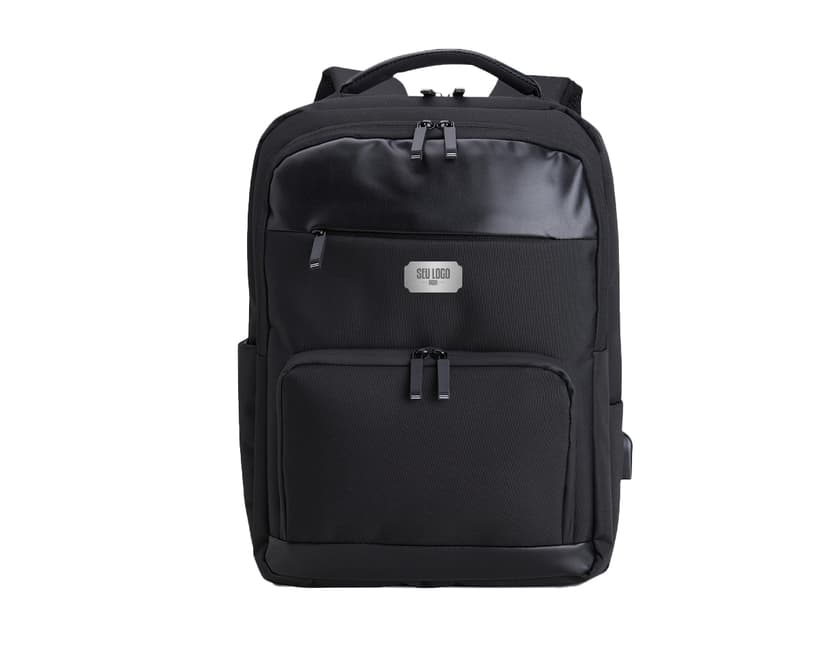 Mochila de poliéster preta de 29 litros, com fecho de zíper, alça de couro, bolso de metal, design moderno e elegante.