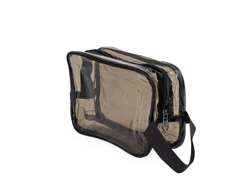 COD.: 5959Nécessaire confeccionada em nylon, com frente em visor transparente, fechamento por zíper e alça superior. Inclui também uma alça de transporte em nylon.